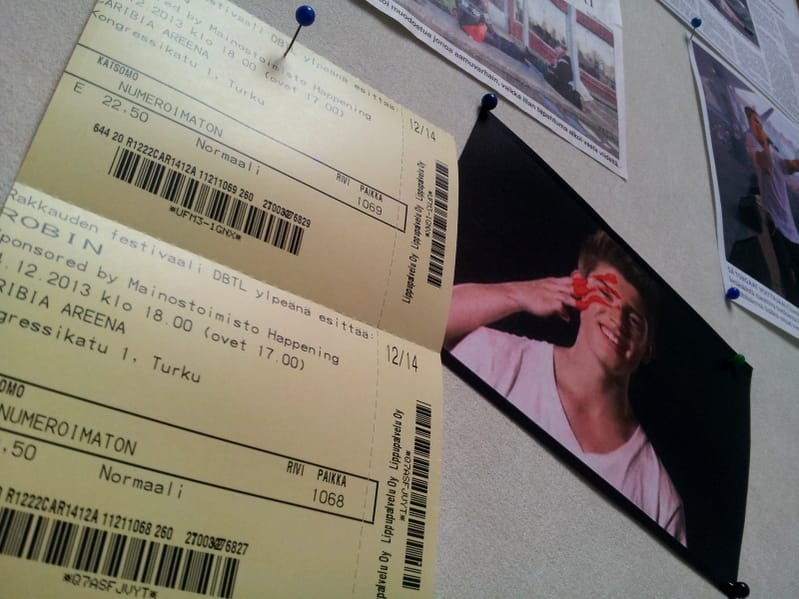 Robinin-keikka lähestyy, kävin torstaina hakemassa liput. Kaveri meinas saada sen lauantain myös vapaaksi, jotta päästäisiin jonottamaan aika ajoissa ja saatais siten hyvät paikat eturivistä tai ainakin sen läheltä. En varmaan osaa etukäteen edes kuvitella sitä teinien määrää, joka siellä vallitsee, mutta otan sen osana elämystä.