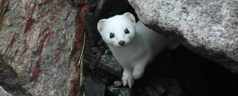 Näin kun otus juoksi tien yli sillan alle ja siltaa ylittäessämme se tuli kuikuilemaan meitä. Ja mehän kuikuiltiin takaisin! Monta kertaa se vaihtoi paikkaa ja aina vain tuikkasi päänsä esiin uuden kiven takaa ja tuijotti meitä. Miten ihana eläin! Sain kuvata häntä juuri niin kauan kuin halusin. Katsokaa noita ihania pikku kuratassuja.