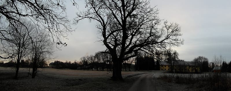 Myrsky oli kaatanut valtavan puun hautausmaalla tien yli ja istuttiin siihen rungon päälle hyväksi toviksi juttelemaan ja fiilistelemään. Takaisin käveltiin sitten vielä kartanon seudun teitä, siellä oli niin kaunista.