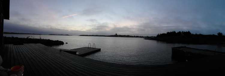 Heti aamulla kahdeksalta pakkasimme korin täyteen eväitä ja lähdimme aamupalapiknikille. Taivas näytti siltä, että sieltä saattaisi pian pilkahtaa jopa aurinko. Kohtasimme matkallamme lintumiehen, joka neuvoi meitä menemään piknikille hotellin saunan laiturille. Sieltä aukesikin superkaunis näkymä kohti Utöä.