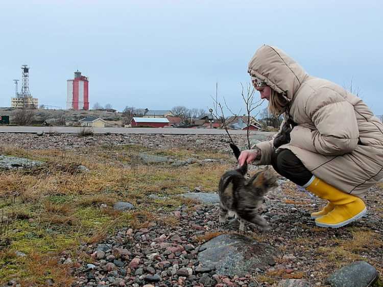 Matkalla niemeen pieni kissa lyöttäytyi seuraamme. Se seurasi meitä ja kerjäsi hellyyttä ja ehkä ruokaakin. Sisko ihastui siihen kovasti ja olisi halunnut tuoda sen mukanamme Saloon. Kukaan ei tiennyt, kenen kissa on. Epäiltiin, että joku on vain jättänyt sen saareen. Kissa oli ihan tosi pieni. Ehkä puolet tavallisesta kissasta. Mutta aikuiselta se vaikutti. Poloinen.