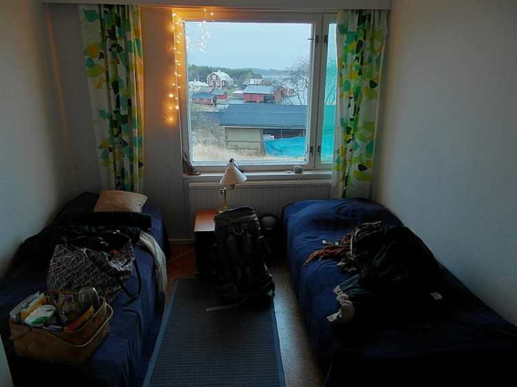 Alla vielä kuva huoneestamme. Meillä oli ihanan tunnelmalliset valotkin ikkunassa. Meillä kävi tuuri siinäkin, että huoneemme ikkuna oli kohti merta. Varasinkin heinäkuuksi juuri saman huoneen. Lupasin isälleni joululahjaksi viedä hänet Utön saarelle ensimmäistä kertaa.