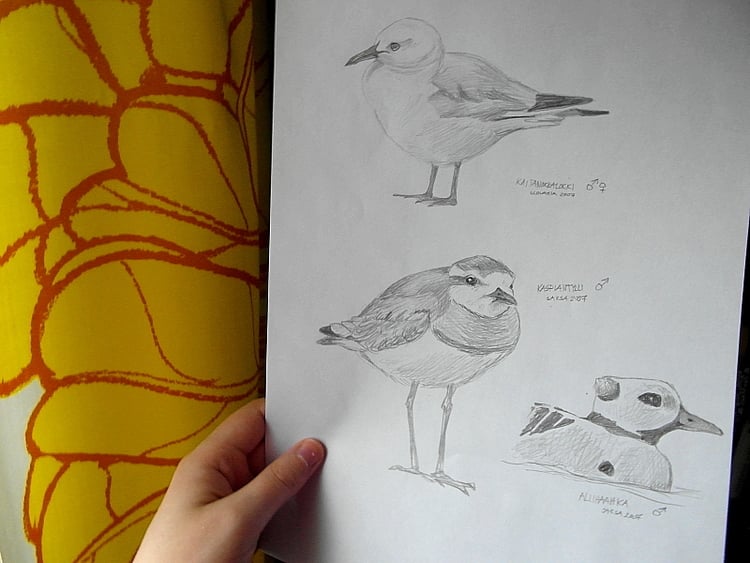 Kaitanokkalokki, kaspiantylli ja allihaahka, piirretty Saksassa vuonna 2007. Aika söpösiä, vaikka ovatkin vain luonnoksia.