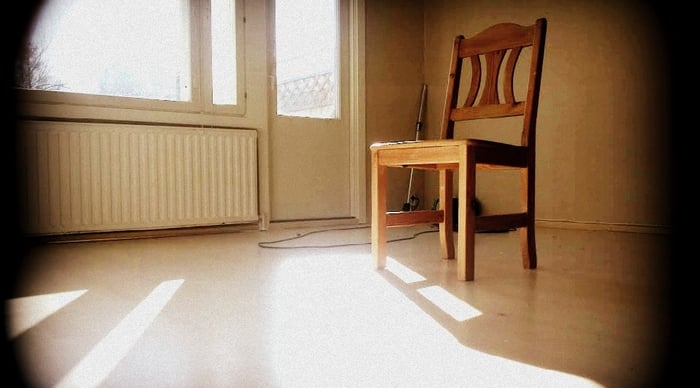 Siellä oli aivan tyhjää, vain tuoli kökötti yksinään keskellä olohuoneen lattiaa. Sammakot ihmettelivät purkissaan, onko heidät vallan hyljätty. No, onneksi he pääsevät huomenna uuteen upeaan kotiinsa.