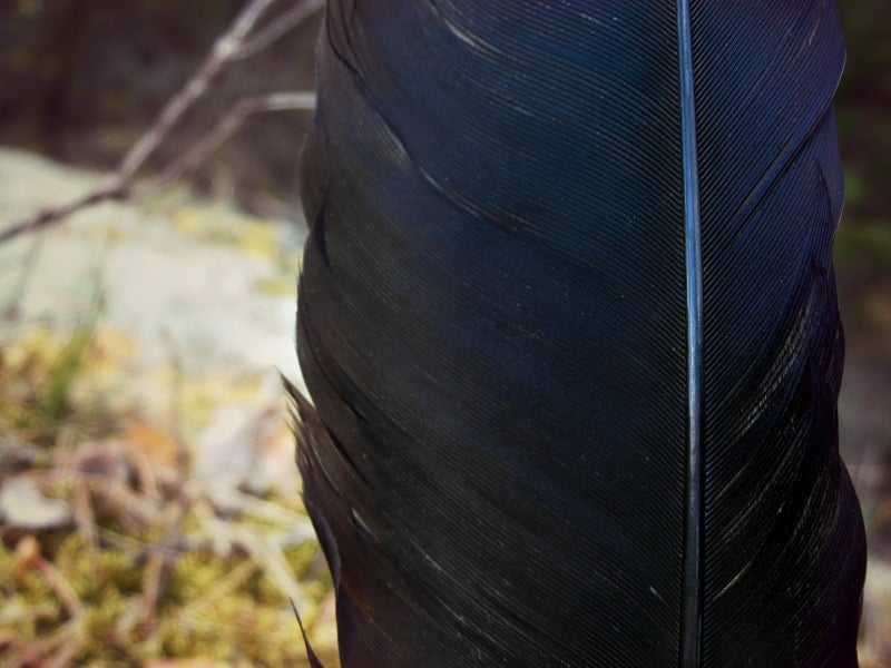 Meillä oli vaikeus löytää korppien pesää. Edes emoja ei näkynyt eikä kuulunut. Löysin maasta mustan komean korpinsulan, jonka otin mukaani. Pian pesä sitten löytyikin. Sen juurella oli kakkaa, josta voitiin päätellä, että pesässä oli poikasia, vaikka pihaustakaan ei kuulunut.