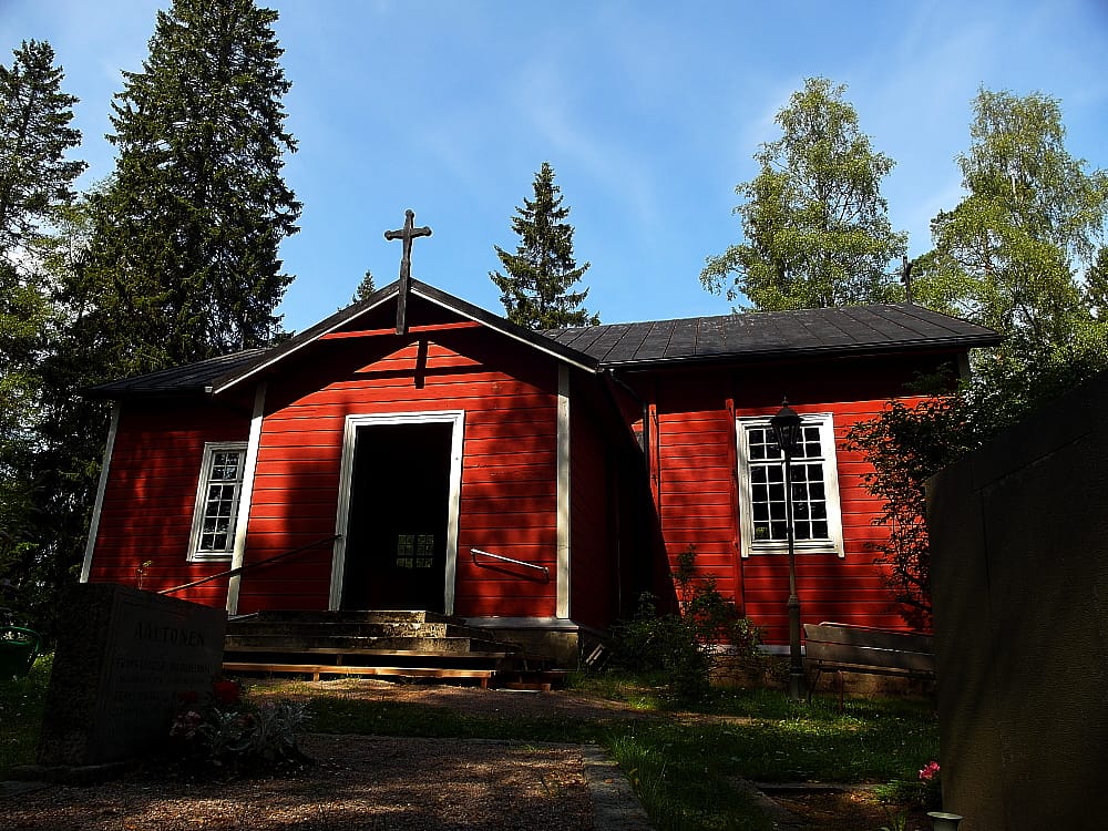 Kirkko oli hyvin perinteisen näköinen puukirkko mataline pikku tapuleineen. Hautuumaa oli pieni ja sievä. Kirkossa oli rouva, joka kertoi kirkon historiasta, mutta eihän minulle siitä juuri mitään päähän jäänyt.