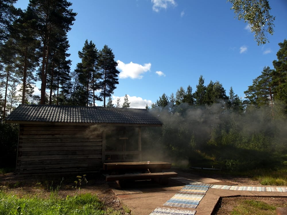 Aamulla savusaunaa lämmitettiin taas jo uudelleen seuraavia mökkiläisiä varten. En ole aiemmin nähnyt savusaunan lämmitystä, hurjannäköistä puuhaa täytyy sanoa!