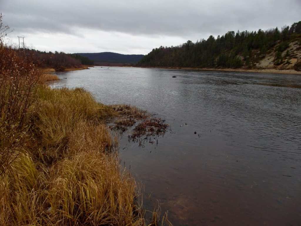 Ainakin tällä hetkellä joki virtaa varsin rauhallisena. Se kiemurtelee Norjan ja Suomen hiekkarantojen välissä. Kesäkuumalla varmasti mukava uimapaikka! Kylä on periaatteessa aivan vieressä, mutta ei sitä kyllä rannalle näy, eikä rantaa näy kylälle.