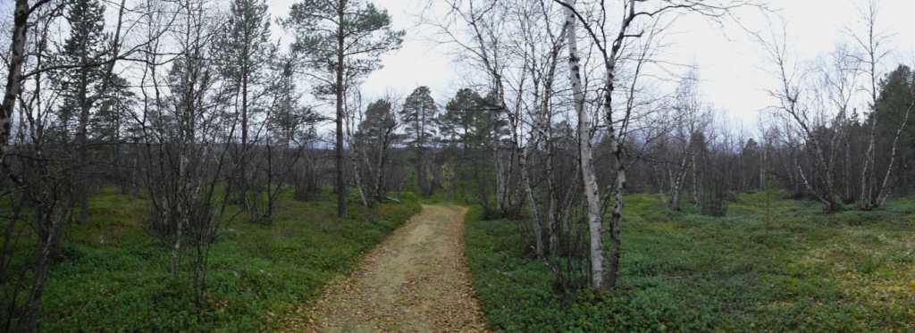 Rannalle vievä polku, tai pieni tie, on todella kaunis. Sitä ympäröi matala metsä, joka on pääasiassa koivua ja mäntyä. Maa on puolukkaa
