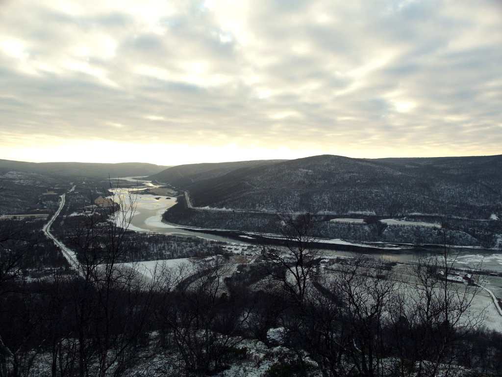 Pakkasta oli muutama aste, rinteellä oli paljon lämpimämpää kuin täällä alhaalla kylässä. Kylä oli pilviharson alla, mutta ylhäällä aurinko paistoi lähes kirkkaalta taivaalta ja alas levittäytyi upea, unimainen maisema.
