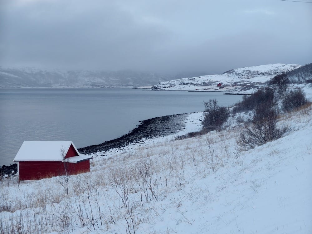Voi sanoa, että pimeää oli jo kolmen aikaan norjalaista aikaa. Välillä alkoi karsea, jäinen lumisade, sitten se taas yhtäkkiä loppui.