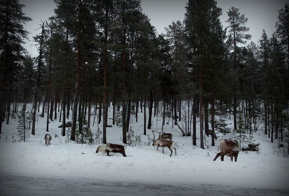 Kaamasesta löysin poroja tienvarresta. Olen vielä sen verran turisti, että kun suora oli pitkä eikä muita autoja ollut missään, niin pysähdyin kuvaamaan.