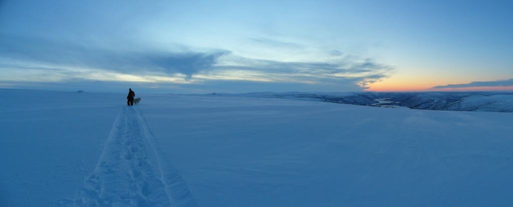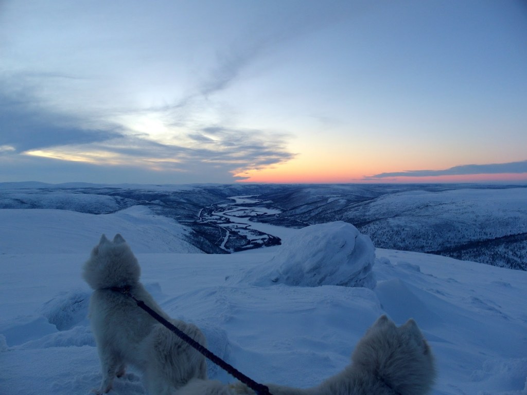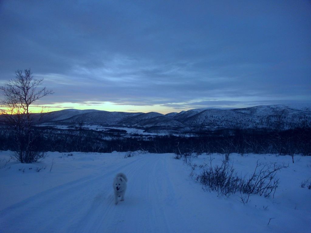 Pakkasta oli ehkä yksi aste, taivas oli kirkas eikä tuulta ollut nimeksikään. Sää oli siis täydellinen. Tunturin huipulle on kylästä noin kuusi kilometriä. Alkupätkä on selvää tietä, mutta tie pienenee ja pienenee ja lopulta puurajan jälkeen voi seurata enää tunturiin pystytettyjä merkkejä reitillä pysyäkseen.
