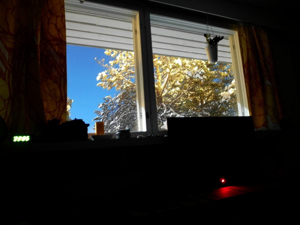 Revontulet tulivat illalla. Koko taivas oli tulessa. Harmi vain, että minä olin silloin sängyssä jo niin väsyneenä, että en kerta kaikkiaan jaksanut nousta ylös. Ihailin niiden kajoa sitten vain omasta ikkunastani.