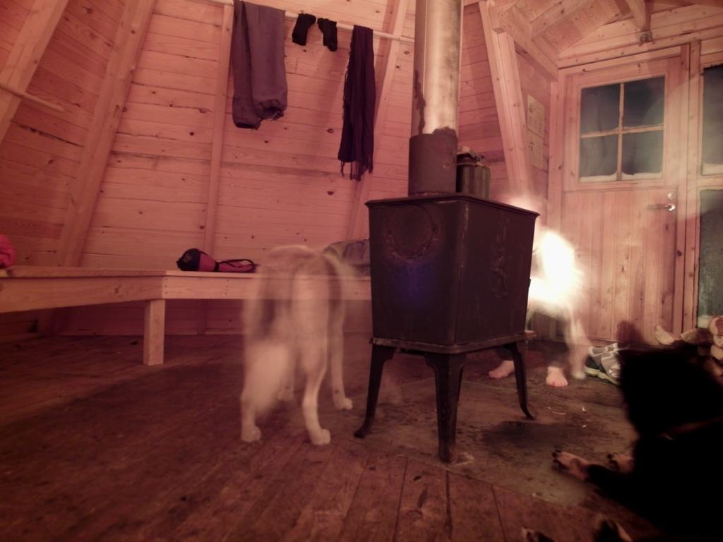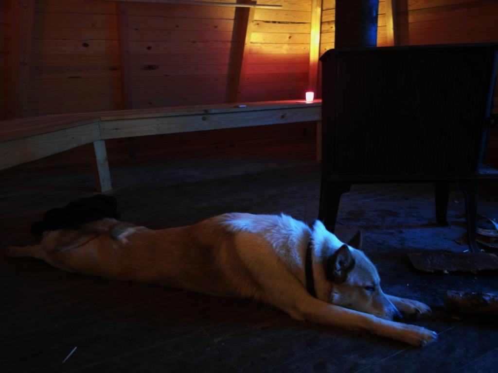 Yöllä oli muutaman kerran noustava ylös lisäämään puita, kun kammi alkoi käydä kylmäksi. Kovin kylmä ei ehtinyt tulla missään vaiheessa, joten nukuttua sai ihan hyvin.