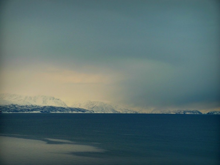 Altasta lähtiessämme sää muuttui harmaaksi ja lunta tuli taivaalta niin että näkyvyys meni aika huonoksi. Mutta ei se mitään. Tie oli minulle tuttu viime syksyn ruskareissulta, ja matkanteko oli kuin ruusuilla tanssimista.