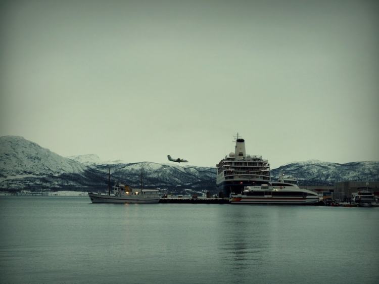 No emmehän me Altassa mitään varsinaisesti tehneet, oli sunnuntai ja koko Norja on kiinni sunnuntaisin. Pysähdyimme parille parkkipaikalle ihailemaan sulaa Jäämerta. Näimme suuria laivoja ja laskeutuvan lentokoneen.