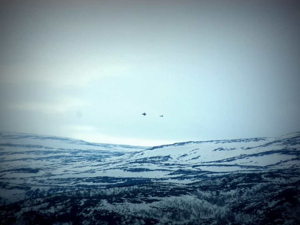 Finnmarkin sotaharjoitus tarjosi monenlaista kiinnostavaa katseltavaa. Näimme hävittäjiä pariin otteeseen, ja tiellä meitä vastaan tuli useita raskaita ajoneuvoja joilla oli panssarivaunuja kyydissään. Teillä myös marssi sotilaita ja takaisin ajaessamme pääsimme Fiiun kanssa keskelle jonkinlaista sotilassaattuetta.