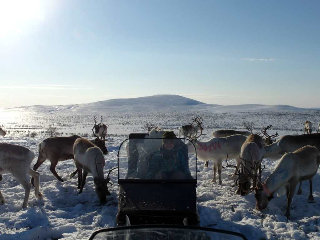 Toisena päivänä ajoimme pitkänä letkana kauas tunturiin kelkkailemaan ja poroja katsomaan ja ruokkimaan. Ikimuistoisen tunturiretken meille oli järjestänyt eräs täällä pitkään asunut tuttava. Meillä oli kolme kelkkaa ja kaksi rekeä, ja poronrehua mukana. Itsekin pääsin ajamaan kelkkaa pitkän matkaa ja se oli aivan mahtavaa!