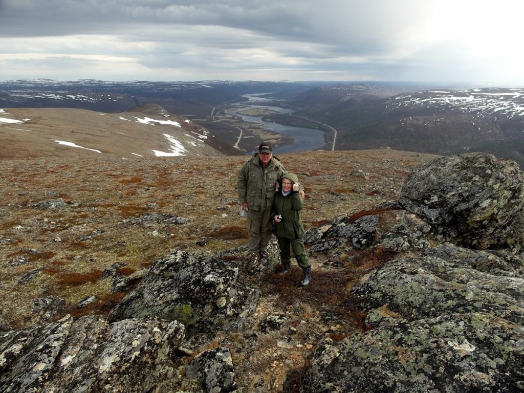 Vanhempani saapuivat tänään Karigasniemeen. Sunnuntaisesta huviajelustamme Karigasniemen Ailiggaan huipulle inspiroituneina päätimme viedä heidät myös tunturin laelle. Kohteeksi valitsimme tällä erää Nuvvus-Ailiggaan, koska sieltä on paljon kauniimpi maisema alas jokilaaksoon.
