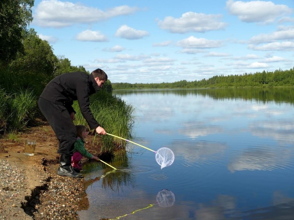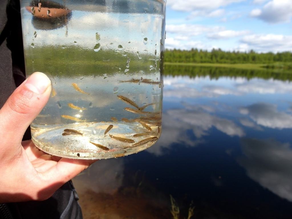 Mies ja hänen pieni tyttärensä nappasivat haavilla rantaviivasta kalanpoikasia lasipurkkiin, jonka varta vasten kävin ostamassa kirpputorilta. Pienen hetken jälkeen päästimme reippaat, sievät poikaset jatkamaan matkaansa.