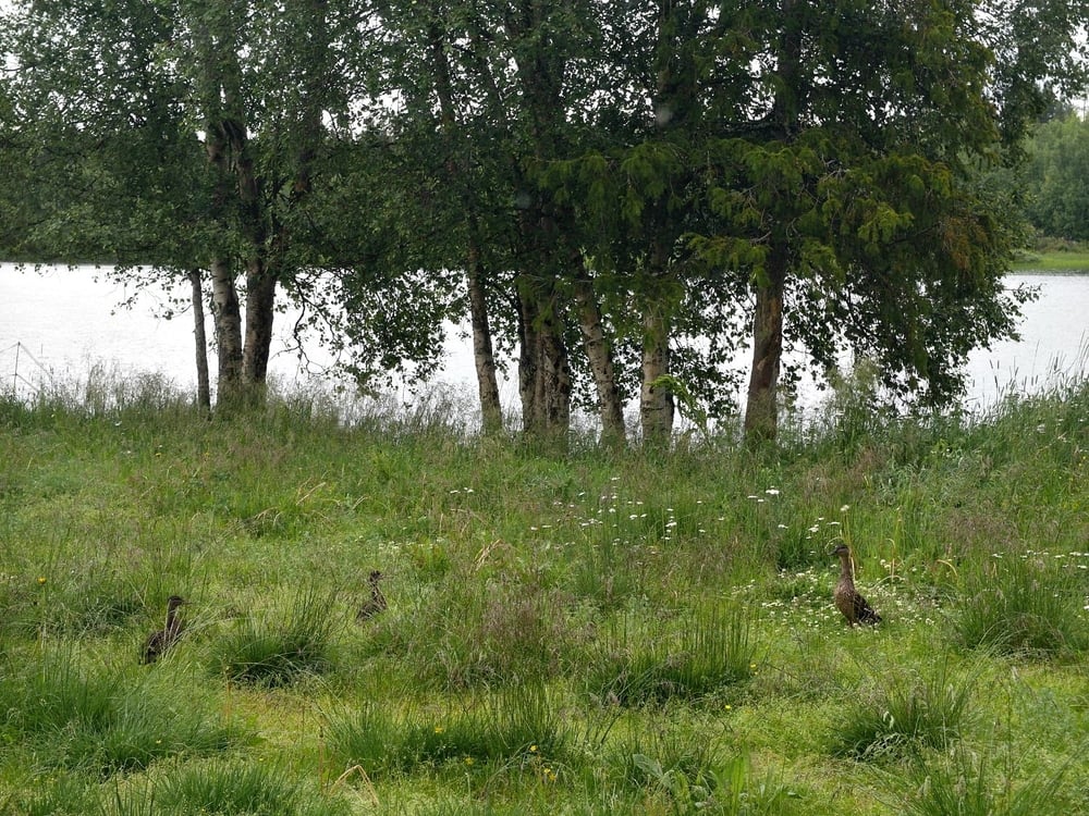 Nurmikko on päässyt venähtämään, onneksi edes sorsat vähän laiduntavat sitä.