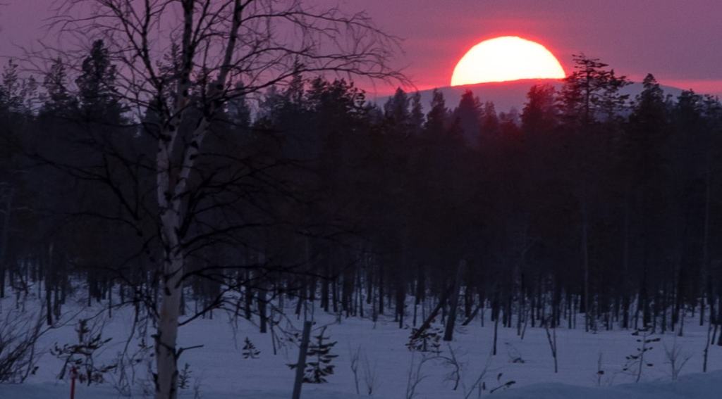 Kuvasin tuossa yhtenä iltana Pallaksen taakse laskevaa aurinkoa omalta pihalta käsin. Tajusin liian myöhään että on aivan huikea auringonlasku tulossa, enkä siis ehtinyt mihinkään paremmille pelipaikoille kameraa käyttämään.