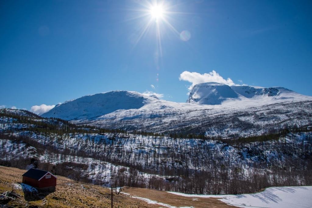 Muuta liikennettä ei juurikaan ollut, norjalaiset taitavat kaikki olla sunnuntaisin hiihtämässä tai patikoimassa. Niinpä saimme rauhassa ajella näissä upeissa maisemissa. Tie oli suurimmilta osin kapea ja kippurainen, mutta aivan hyvä ajaa. Pieni pätkä oli jopa santatietä, mutta sekin oli pääosin ihan hyvässä kunnossa.