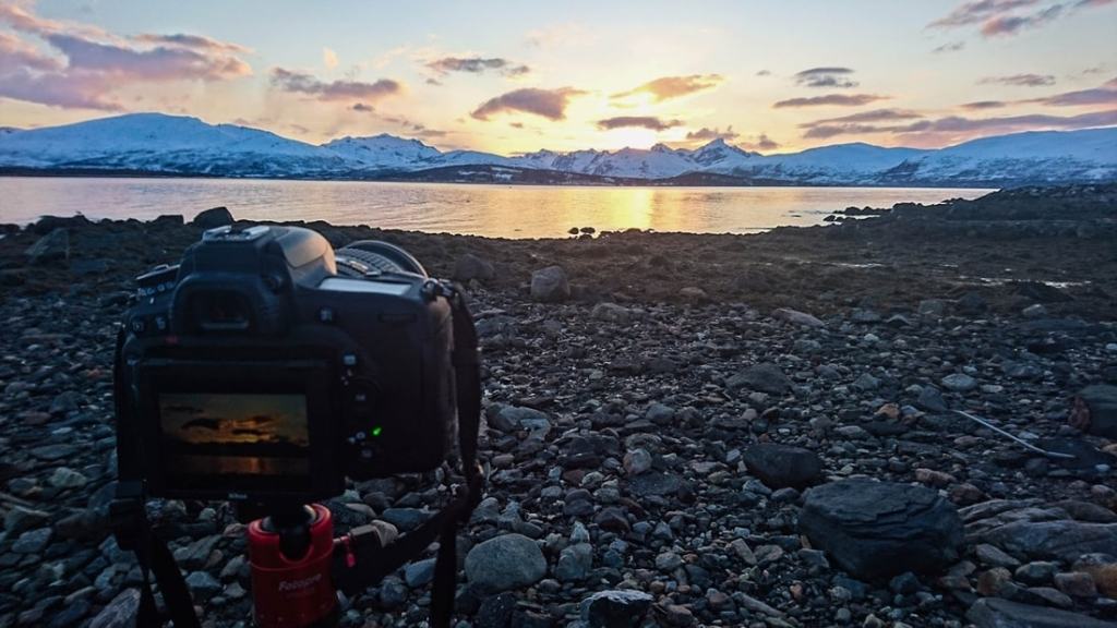 Eilen illalla kokeilimme myös timelapse-kuvausta. Siinä kamera asetetaan ottamaan valokuvia itsekseen tietynmittaisin väliajoin, ja lopuksi kamera pakkaa ottamansa kuvat videoksi. En ole koskaan ennen sellaista kuvannut. Akkua ei ollut paljon jäljellä, joten kuvasimme auringonlaskua vain puoli tuntia. Sillä saimme aikaan kokonaisen sekunnin mittaisen pätkän!
