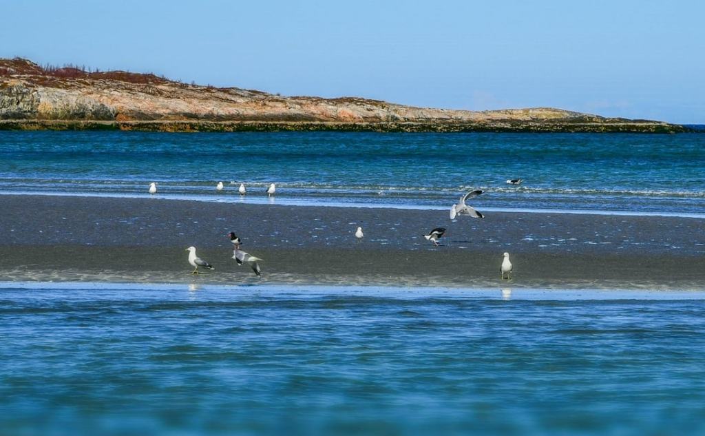Sommaröyn valkoisilla hiekkarannoilla turkoosia vettä katsellessa olisi voinut luulla olevansa vaikka Malediiveilla. Onneksi takana kohosivat suuret lumivalkoiset vuoret ja lämpöä oli vain ehkä kymmenisen astetta, niin muisti olevansa ihanassa Norjassa.