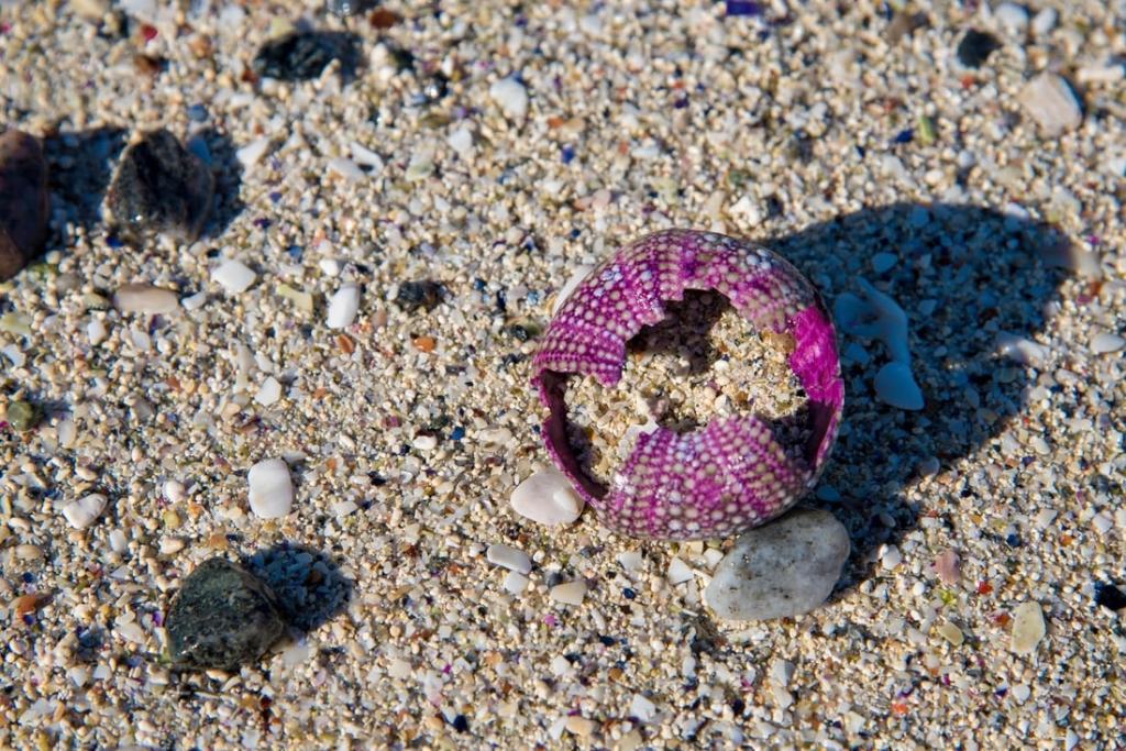 Rannoilta löytyi kaikkea ihmeellistä. Simpukankuoria, merisiilten kuoria, erilaisia leviä ja kauniita kiviä. Penikkana niitä piti aina raahata mukaan, mutta nykyään yleensä riittää että ottaa niistä kuvia. Vain yhden kiven olen haalinut talteen tältä reissulta.