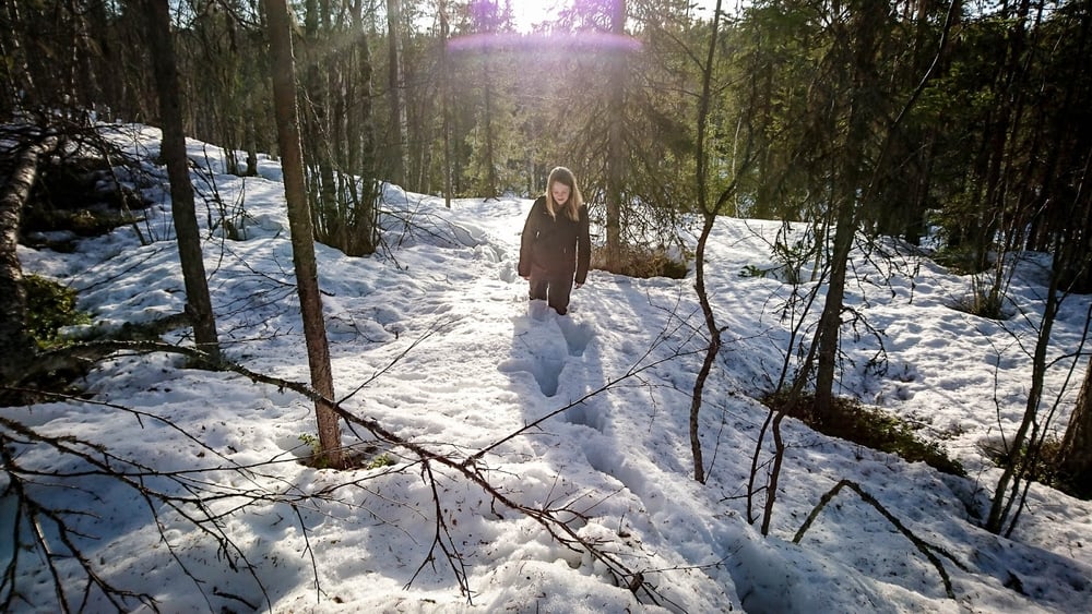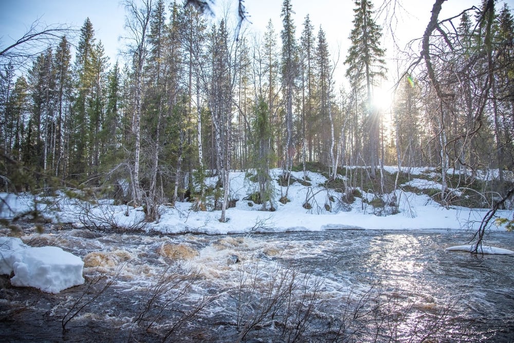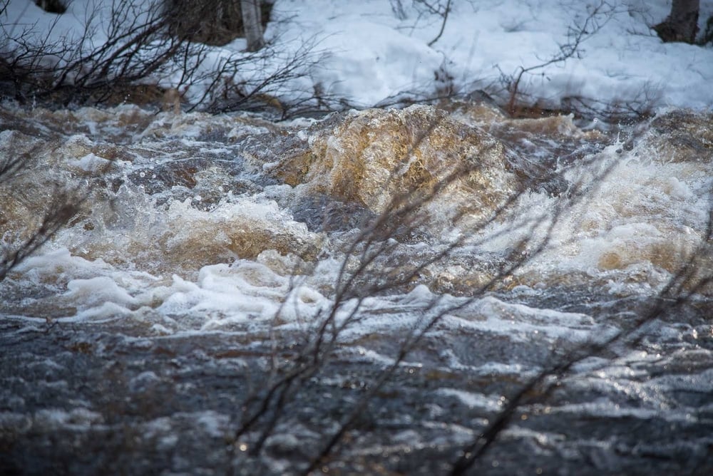 Siitä syntyi oitis idea uhmata märkää lumihankea ja suunnata koskea katsomaan illalla. Mieskin tuli mukaan, vaikka arvasimme molemmat, että ei tuu olemaan helppoa.