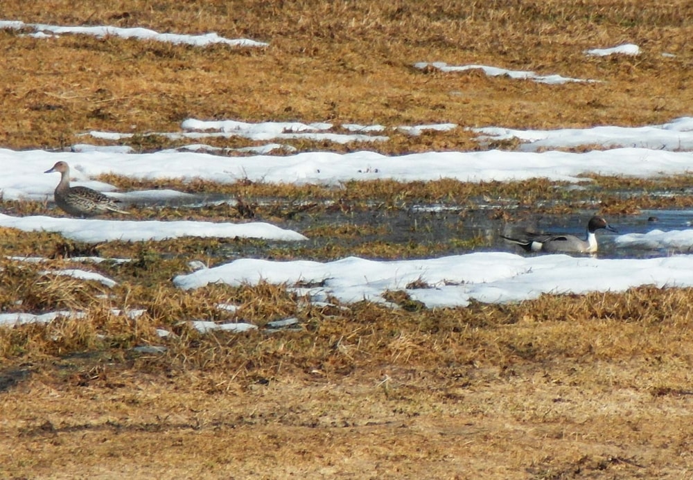 Jäätä vahtiessani bongasin maisemasta muun muassa taveja, heinätaveja, suokukkoja ja tuulihaukan. Kurkien huutoja kuului jostain metsän takaa. Oli aika hieno tunnelma! Joku iso kalakin polskutteli rannan lähellä, ihan kuin se olisi leikkinyt jääpalojen keskellä.