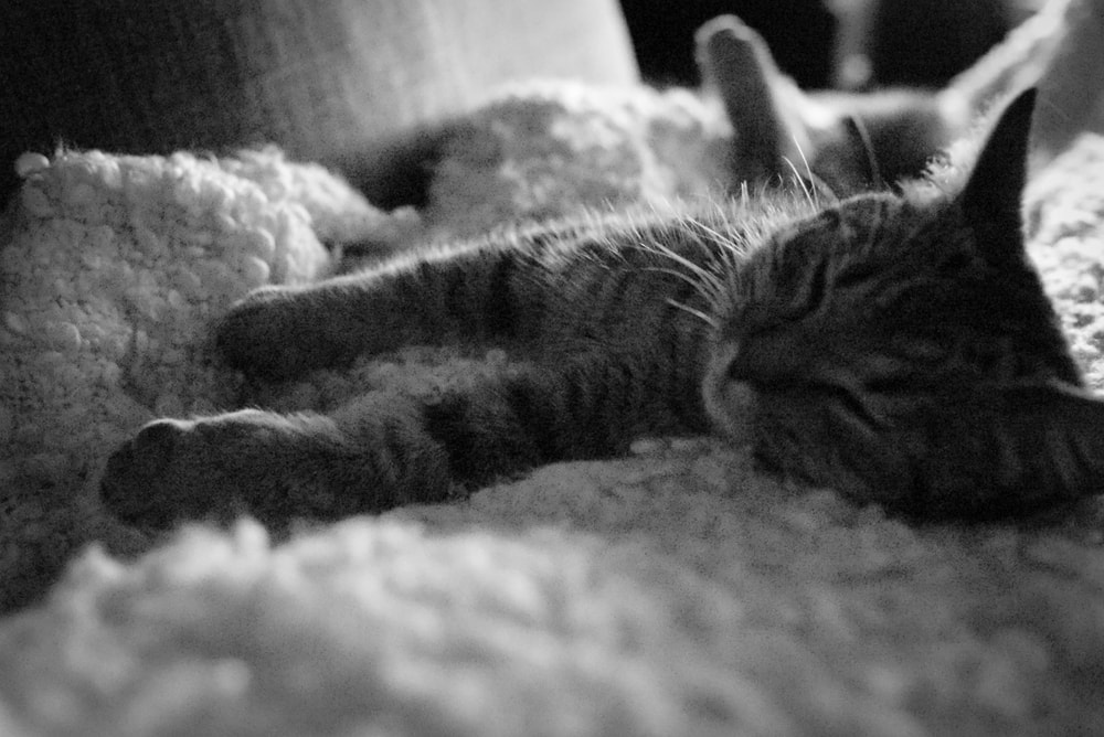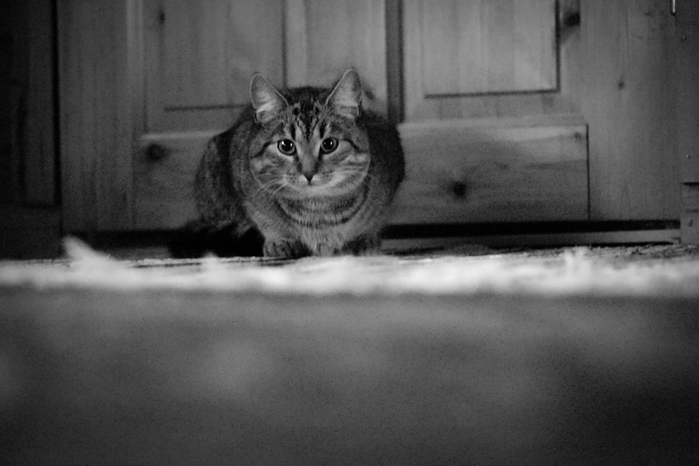 Kissa sai perinteisen iltahepulin mutta asettui sitten kanssamme elokuvaa katsomaan (nukkumaan). Sain päähäni ottaa siitä muutaman kuvan kamerani pimeänäkötoiminnolla. Samalla tuli sitäkin toimintoa testattua oikeasti hämärässä.