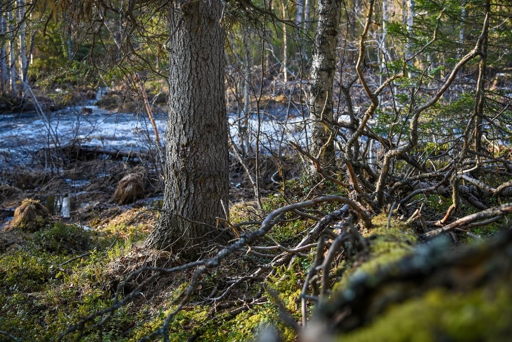Matkalla vielä muuan upeasti valaistu kaunis kuusi sai minut aivan ihastuneeksi. Omassa keväisessä spottivalossaan se seisoi keskellä metsän synkintä seutua.