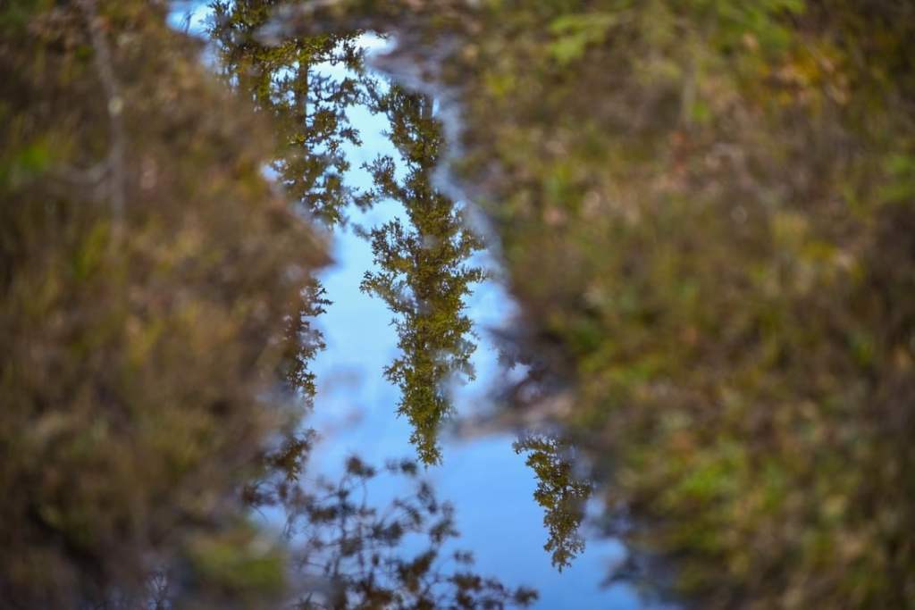 Polulla oli vettä ja se peilasi ympärillään kasvavaa metsää.