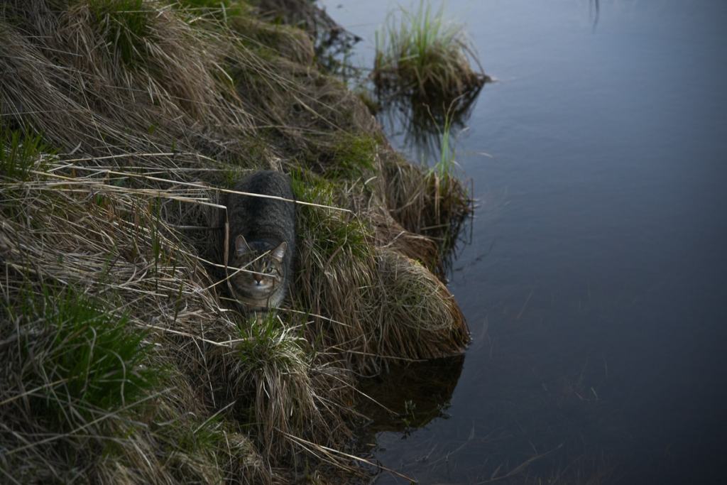 Nappasin illalla vanhan räsymaton mukaani ja astelin rantaan sen kanssa. Petasin maton rantatörmäälle kolmen suuren kuusen alle. Kännykällä ja kannettavalla kaiuttimella laitoin soimaan ruotsalaisen Jarŋŋan musiikkia. Pötkähdin matolle lukemaan kirjaa suomalaisten pyhistä paikoista. Kissa leikki rannassa.