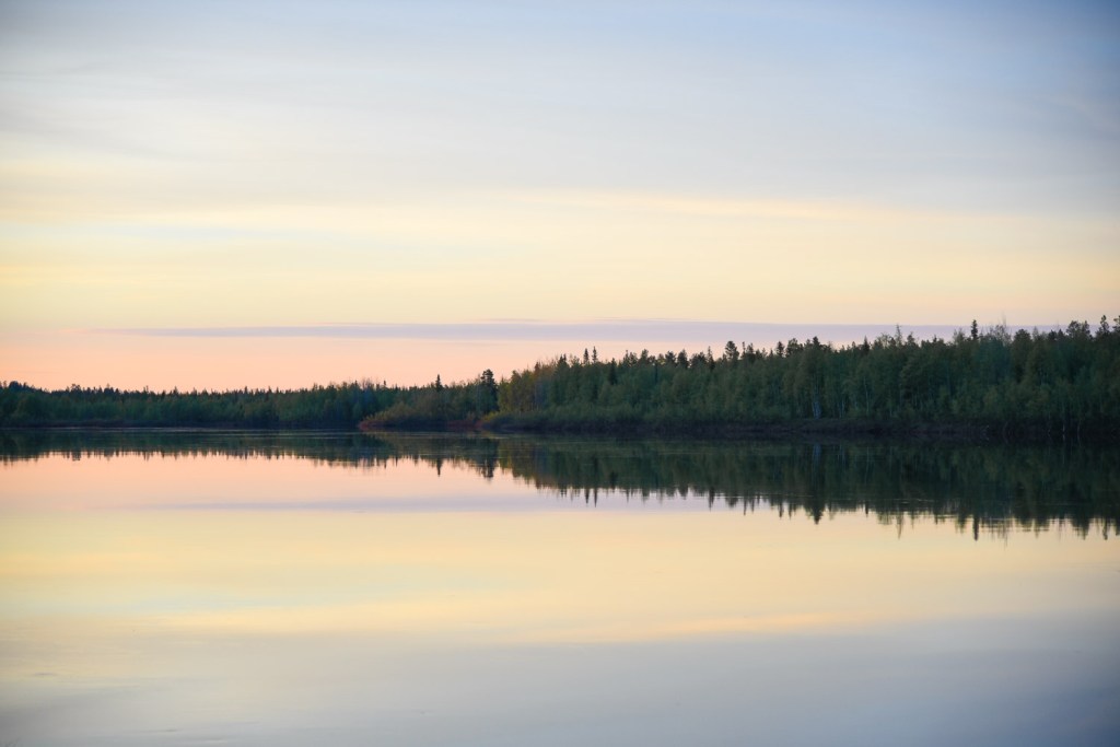 Joki oli peilityyni ja kuvasti hienosti taivasta.