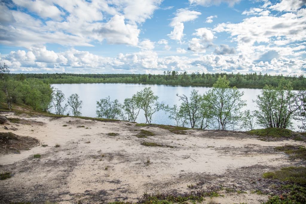 Sen lisäksi, että kävimme kahtena aamuna Sauvulla fiilistelemässä ja aamukahvit nauttimassa, oli ensimmäinen varsinainen kohteemme Ison ja Pienen Harjujärven välissä kiemurteleva harju Muoniossa.