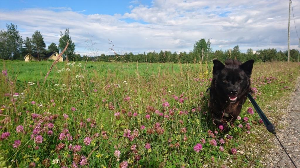 Moskun kotiutuminen on edennyt kivasti. Autoja ei enää jahdata hihnassa, ja kiellosta se osaa aika hyvin olla jahtaamatta myöskään elukoita. Tänään aamulla viimeksi oli koettelemus, kun päästäinen juoksi tien yli.