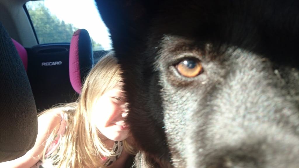Miehen pieni tytär oli meillä pikavisiitillä viime viikolla, ja siinä ei kauaa mennyt ennen kuin he löysivät Moskun kanssa yhteisen sävelen. Onneksi tyttö tykkäsi Moskusta kovasti, ja Moskukin osasi ottaa sen verran rauhallisesti, ettei tuuppinut toista kumoon.