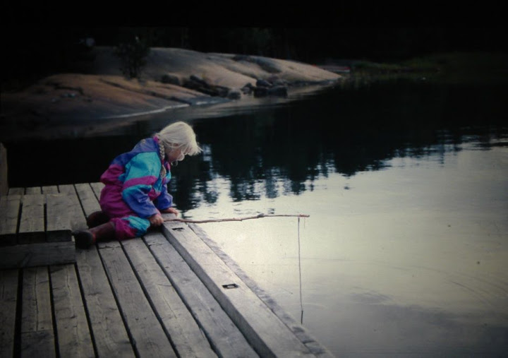 Muksuna olin kova likka onkimaan. Matkustaessamme joka ikinen kesäviikonloppu Houtskarin Mossalaan, kaivoin ongen esille monta kertaa matkan aikana, jos oli tiedossa, että lossia joudutaan hetkenkin odottamaan.