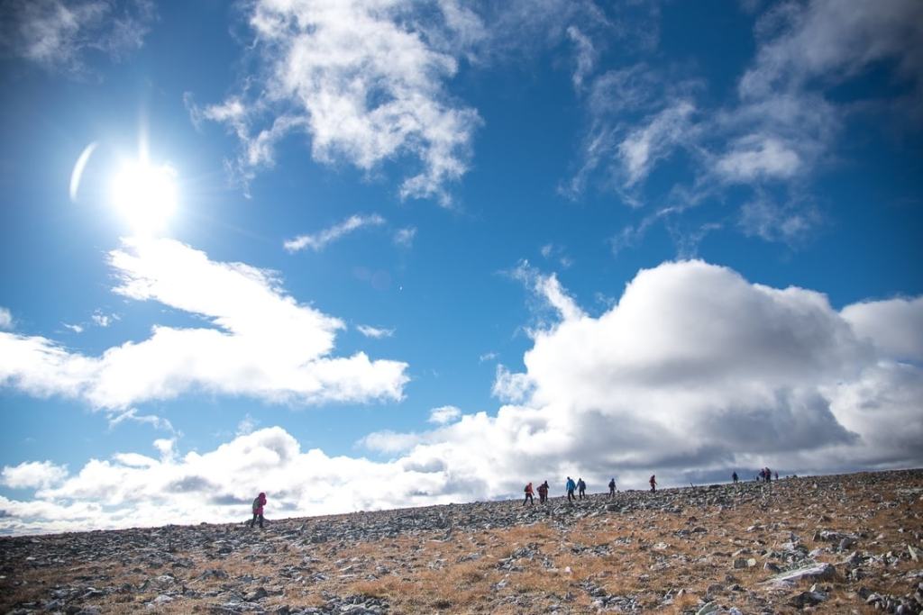 Ohitsemme marssi ihmisiä ja tarjosimme heille suklaata taukoa pitäessämme. Tunturituuli oli kylmettänyt tummaa appelsiinisuklaata hieman, mutta kyllä se silti maistui.