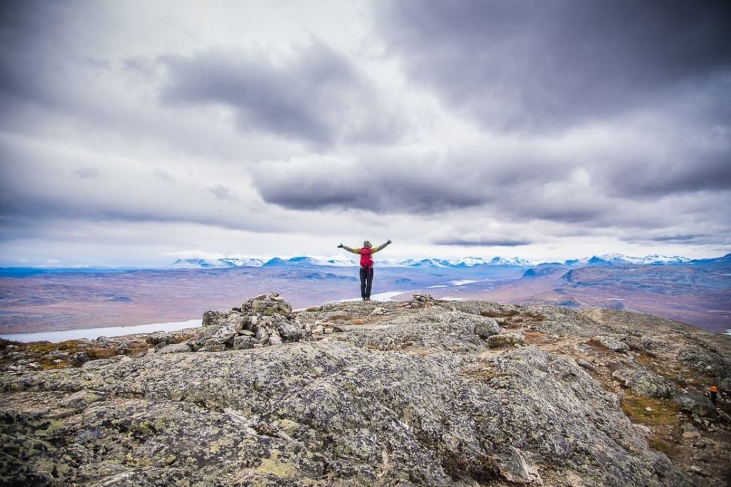 Maailma Saanan huipulta oli kaunis. Rustasimme nimemme vieraskirjaan, joka löytyi postilaatikosta, ja aloitimme paluumatkan. Pian tuuli laantui ja autolle päästyämme alkoi sade.