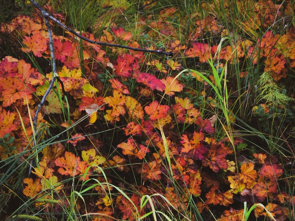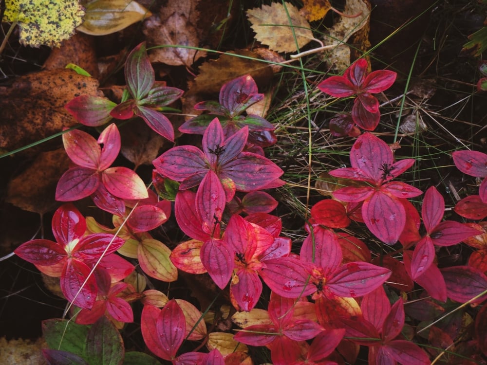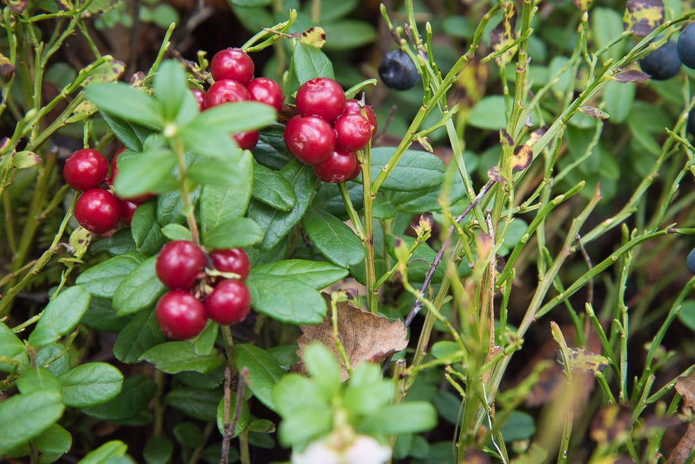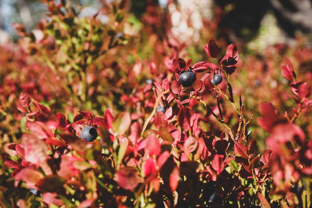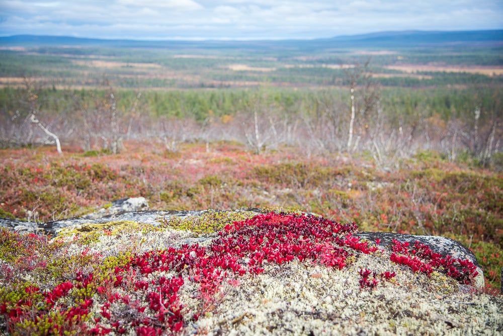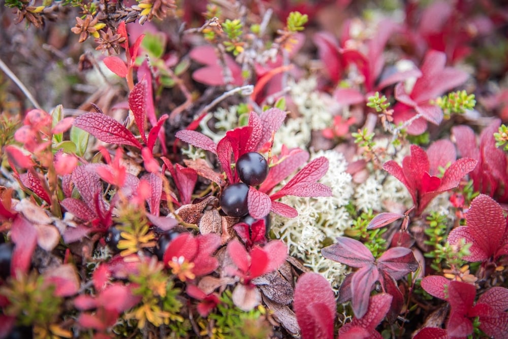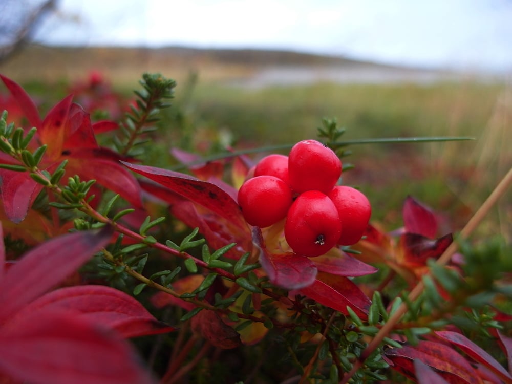 Riekonmarja taas kasvaa punaisina mattoina tuntureilla, ja kasvi on suuri tekijä maaruskan loistossa kun ruska-aika on kerennyt hieman jo pidemmälle. Mustat marjat kasvavat lehtien alla, ja niitä on vaikea tai jopa mahdoton löytää ilman, että haroo sormilla lehtiä varovasti pois edestä.