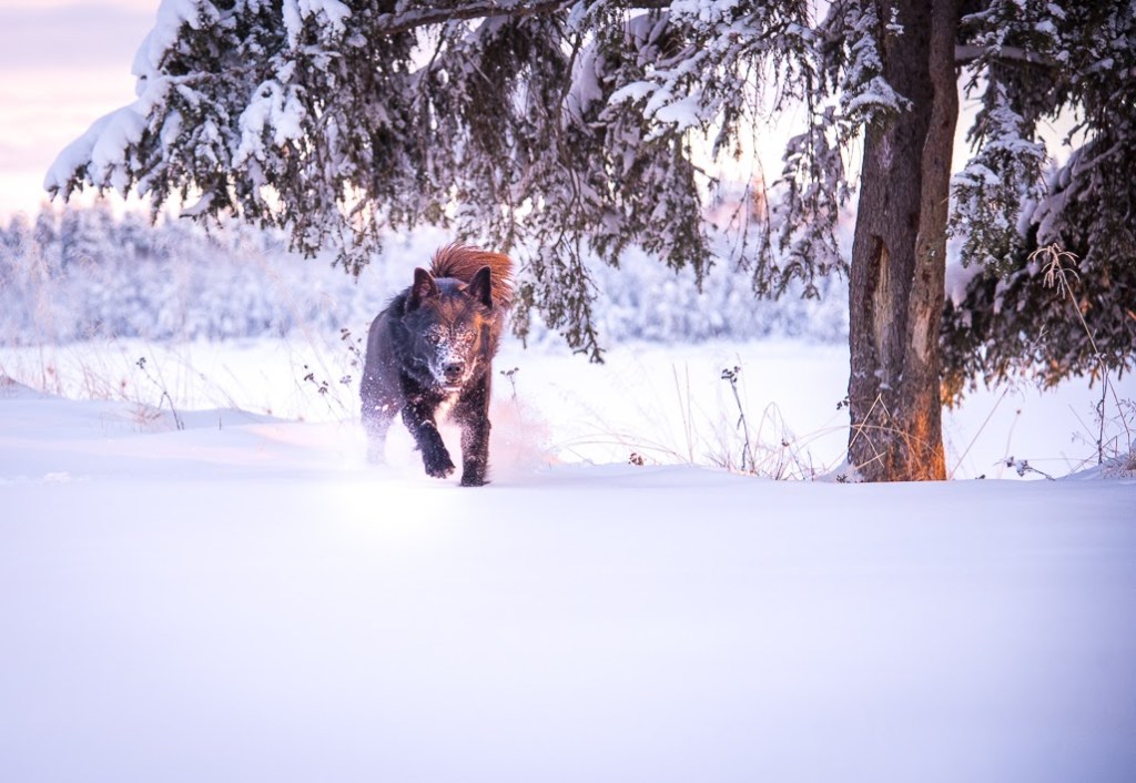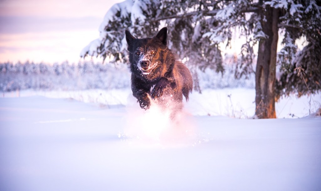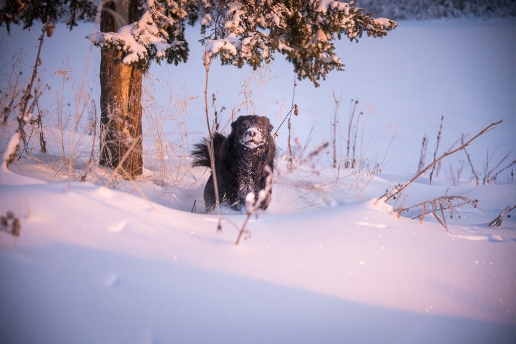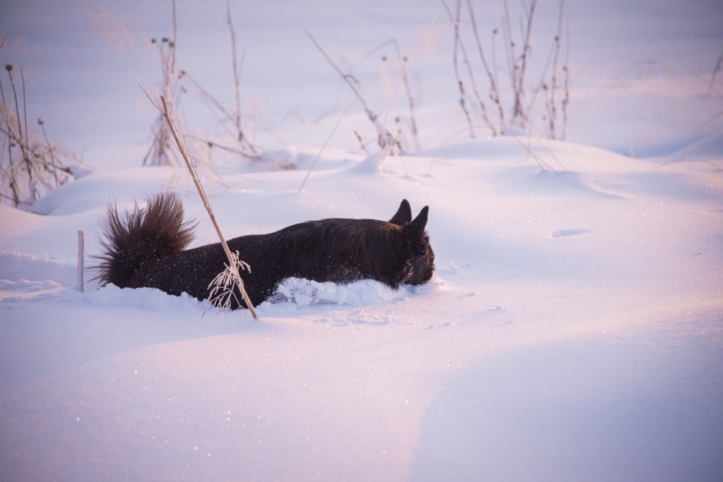 Mosku rakastaa lunta. Se on hullunnäköinen kun sen naama on lumessa.