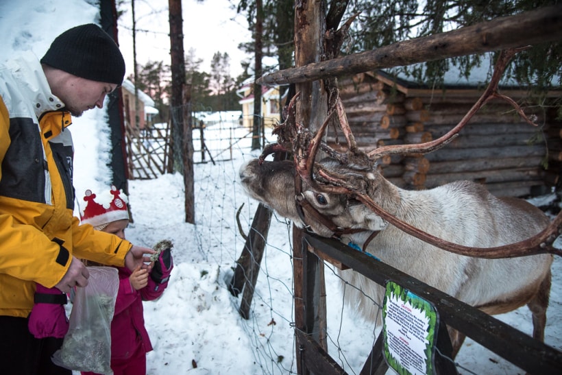 Syötimme poroa kaikki kolme. Nätisti osasi poro ottaa kädestä, ei tarvinnut sormia varoa.