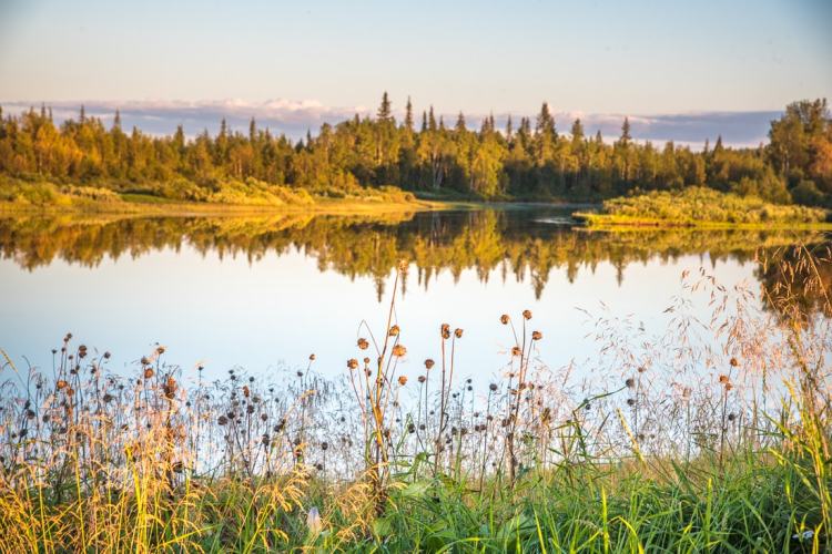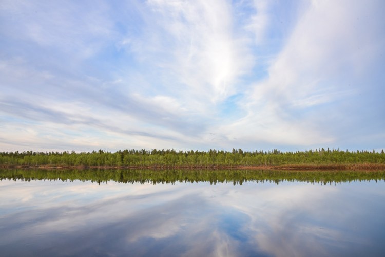 Samalla värit ja tunnelma muuttuvat täysin. Hiljaisesta tulee eloisaa, pysähtynyt alkaa virrata. Taivas peilaa koko skaalassaan joen peilipintaan, ja lyhyen kesän ajan näyttää kuin taivaita olisi kaksi.