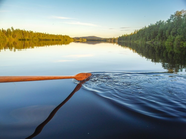 Oli niin hiljaista, että välillä kuuntelimme maan, veden ja taivaan suurta hiljaisuutta täysin aloillamme, ilman airojen luomaa, sinänsä ihanaa veden loisketta.