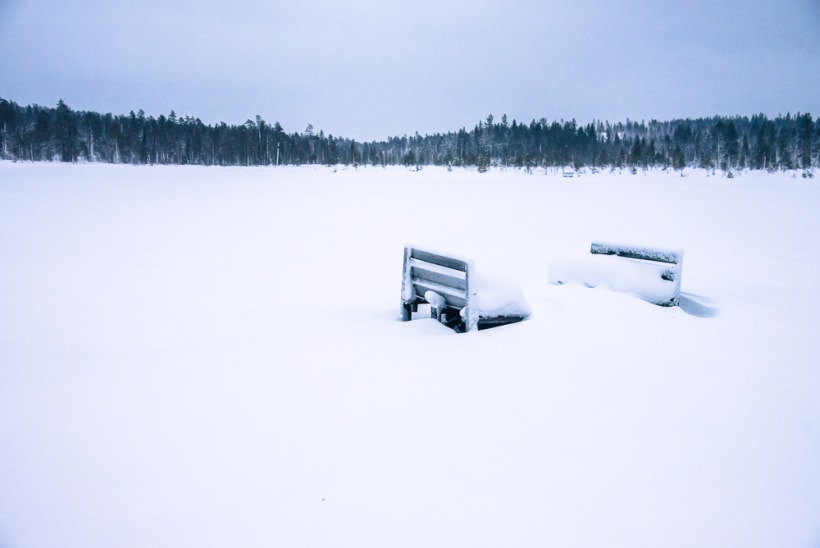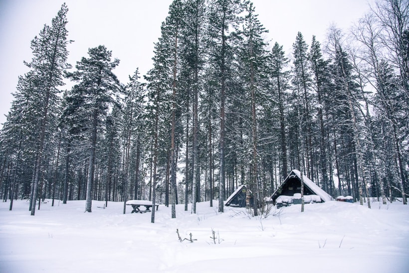 Sarvilampien kota on lammen rannalla. Varmaan riittää kesällä hyttysiä. Tai eihän Lapissa ole hyttysiä ollenkaan. Täällä on vain sääskiä.